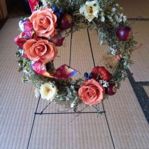 秋リースは普段使わないような色合わせができるので、思い切ってこんな感じでっ🎃楽しい~😁🎶