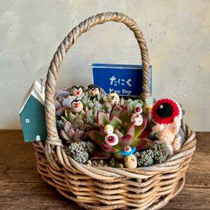 🏷️オヤジフェスティバル いよいよ大詰めですねぇ😆💕 オヤジピータン全員参加しま〜す💞 いっぱい集まって、けいこさんの編み編みオヤジも浮かれて踊ってます♪︎~(・ε・。)💕 去年の春、弱ってたエケさん達を寄せ集めたカゴ寄せ🧺🌿 これが意外と元気に育ってます🥰 土少なめだから、お水多めでもパープルヘイズ元気だし💜 このまま頑張って欲しいな🌿✨ ( ง •̀ •́)ง✨