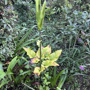 家庭菜園、カボチャ🎃 (o^^o) 塀を乗り越えて隣に進出、垂直の状態で実をつけたカボチャです。 (๑˃̵ᴗ˂̵)