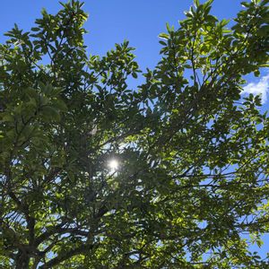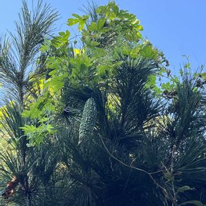 家庭菜園、ゴーヤです。 なんと元気なゴーヤなんでしょう! 松の樹まで蔓を伸ばし実を付けましたよ。 (o^^o)