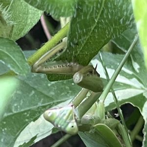 おはよん、カマキリ君。 アサガオの葉っぱの中で何をしているのかな? ( ^ω^ )