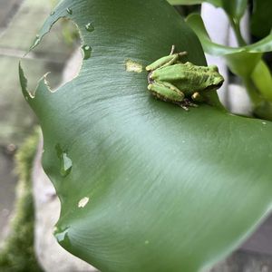 おはよう、カエル君。 ホテイアオイの葉っぱの上で何をしてるのかな?まさか、バッタ君を狙ってやって来たのかな? メダカの赤ちゃんは食べないでねー! (๑>◡<๑)