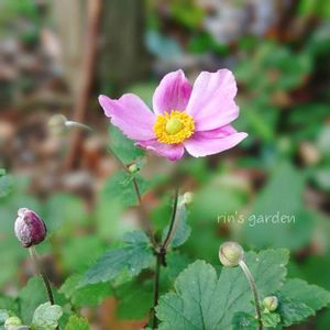 おはようございます😃 今朝は、ひんやりとしてて少し肌寒かったです。 地植えにした秋明菊が可愛いらしく咲いていて、見る度に笑顔になります🥰💕 周りのハランやヤブランに埋もれ気味なのですが、その間から小さなピンクのお顔を出して、こっちを見てと言っているようです💖