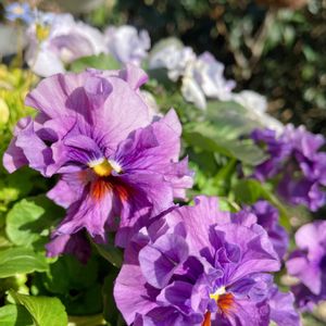 フリル咲きパンジー 薄紫色のアマルフィくん 薄ピンクのももこちゃん なんて洒落たお名前なんでしょ ⸌̷̻ ( ᷇๑ॢ˃̶͈̀ ꇴ ˂̶͈́๑ॢ) ⸌̷̻
