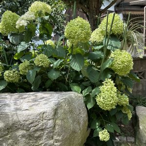 おはよーございます🥵 中庭のアナベルさんは1輪を残しみんな ライム🍋🟩色ドレスに変身されたので 今日は ドライにしまーす