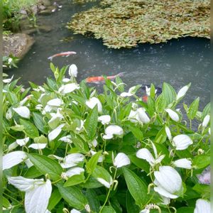 今日のお花 ハンゲショウ 半分お化粧したような葉っぱが涼し気🤍💚 先週お出かけしたアジサイ寺のマネの池