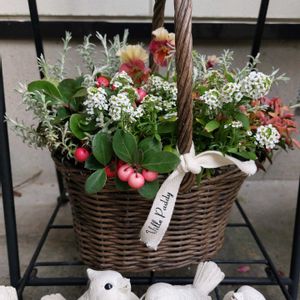 🏷️つぶつぶの日 ①先月末のかご寄せギャザリング🌿 ②チェッカーベリー🔴🔴🔴🐦🐦🐦 ③寄せてから1ヶ月 伸びてきました、そろそろクリスマスピックでも飾ろうかな🎄