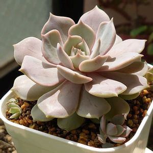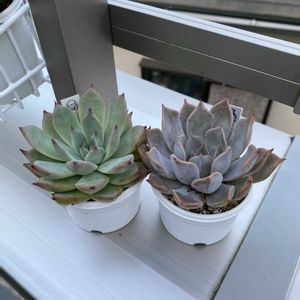 グリーンの多肉ちゃんばかりの中、可愛いピンク色のローラちゃん🩷 横にいるチビちゃんは葉挿しで大きくなった子です🤗 狭いけどもう少しそこにいてね😆 2位目pic こちらも綺麗な色のリラシナさん🩷 以前ハダニの影響で葉っぱが汚くなってたけど、今は大丈夫みたい😍💕 どっちも癒やされます🥰
