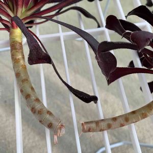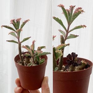 ひとつ前の黒法師さんを切り戻した時に茎だけの部分を土に挿して芽がでて育った株です(〃艸〃) 同じ置き場所のサンルームでも物陰に置いていたので色が違います 不死鳥錦も茎だけの部分から赤ちゃんが出たので一緒の鉢に2本づつ挿したところみんな育ちました😆🎶 さて今後どうしましょ🤭