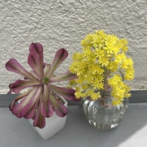 アエオニウム ガーネット 切ってからドキドキでしたが 小さな芽が出てきてくれました 枯れずに済むかな〜 活けた花茎もちゃんと咲き進んで満開近くです