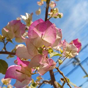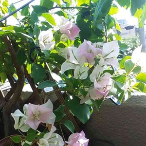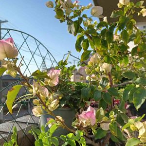 こんばんは😃🌃 今日のベランダ🎵 白地ピンクのブーゲンビリアが沢山お花咲かせてくれました💟 行灯仕立てにしたくて枝伸ばしていたのですが 花付き悪く枝を✂️したら 花付き良く💕 でも形が(^^;💦💦 上手くいかないですね😅 綺麗に咲いてくれたから 『まっ❗いいか⁉️』ですね~(*≧∇≦)ノ♪︎