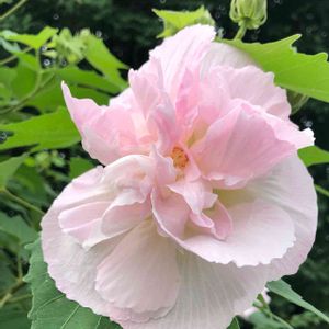 おはようございます☀ 今日のお花🌸フヨウ🌸 近所の公園で咲き始めてます。 酔芙蓉です。 8月26日朝10時過ぎに撮影 まだ薄いピンク色です。 午後から夕方になると、濃い色になっていきます。