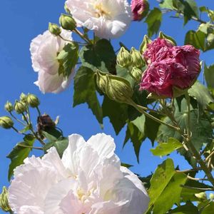 今日のお花の🌼フヨウ🌼 このお花は酔芙蓉で、午前10時のまだ真っ白な時で、今朝撮りました🤳