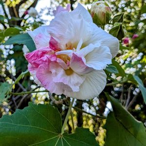 一重咲き酔芙蓉です。 最初は真っ白で、昼前ごろから花の色が変化し始め白とピンクが混ざってます。 🏷日曜日は日本を感じる和の