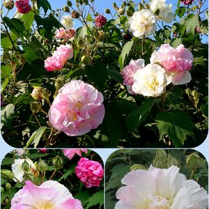 酔芙蓉 通勤途中に咲いています。 白かピンクの1色はよく見かけますが、 今日は色んな濃さのピンクや白も混ざって いつもより一際華やかに見えましたꔛ♡🤍💗💖 朝までに雨も止み秋晴れになり、 朝晩冷え込むけど日中はまだすこし暑い位
