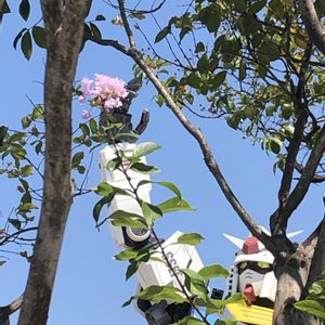 今日はお天気良く、関西万博で「サルスベリ」をパチリ!📸🌸🌿😄 ガンダムは膝まづいています。立つと18メートルになって、大屋根リングを超え、高さ制限に違反🚫するようです。💙♥️👀🌞✌️