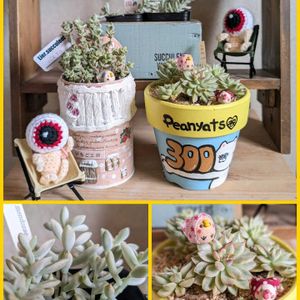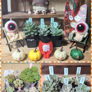 こんばんは🌙 今日はオヤジ祭りじゃ、わっしょい🎶 とイベント狩り🎶 ①イベントの戦利品とオヤジさんたち😆✨ はじめましての多肉屋さんの周年イベント🍀 ↘目的のミックスベリアの交配の子たち✨ ラス1でした😅 手前の子は徒長気味ですがインスタで見た子はめっちゃめっちゃ可愛かったのでこれからが楽しみ🤭💕 ↙その他にも可愛い子ちゃんいっぱい🎶 今日はつぶつぶが気になる日✨ ボタさん苗もつぶつぶ✨ ↑上の段にある鉢はくじ引きで当選しました😆🎶 こちらでは手に入らないレア物らしい✨ タコモデルのようでなんとも愛らしい💕 作家さんの名前を聞いたのに忘れるという🤣 またお店に行ってみよう🎶 オヤジさんたちじっくり鑑賞中です🤭✨ さくっと忘れていた仕事を終わらせてちょこっとイベント参戦…1週間の疲れからかすっかりお昼寝してました🤣 ※②おらいさん交配苗見て欲しくて再投稿😅 再投稿も見切れた💦 左上から 🍀ピンクザラコーザ×そわそわ 🍀そわそわ×チワワエンシス 🍀メキジャイ×そわそわ 🍀だるま姫秀麗×ちょこん 🍀雪蜂×ブルーベリームーン 🍀桜子×ラウイ どの子が可愛くなるかなぁ🎶 だるま姫秀麗交配は間違いない🤭💕