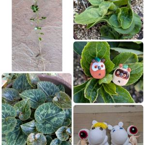 🏷️ムーミンの日 🏷️えなりの日 ↘まつぴよさんのムーミンと目玉オヤジ 編み編みオヤジは、けいこさんの作品です。 ↙もう、何年前のシクラメンだろう? 放置でも毎年新芽が出てくれます。 ↖これが問題のシマトネリコ 大木が有り、高枝切り鋏でも一番上は届かないので花芽を切れず種が落ちて来て生えちゃう😭 何処からでも生えて困っちゃう😥 ↗謎の草 雑草なのか?