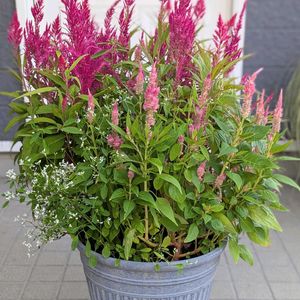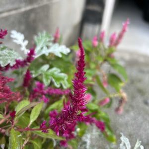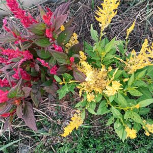 ケイトウのサニータフト 酷暑で水も十分にあげられてなかったけど、花数も増えて大きくなって優秀✨ 赤い方の葉が緑から赤に変わりました。 近くにアシナガバチの巣があって 今はあんまり近寄れない😅