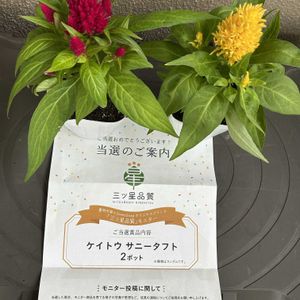 「三ツ星品質」モニターに当選しました😊🩷✨✨ 🌸びっくり‼️です🥰✨ ありがとうございます😊❤️ 鮮やかなピンク🩷と黄色🟡のケイトウです✨✨✨ ☀️暑い夏を…上手く育ってくれるといいなぁ〜🥰🍀✨✨