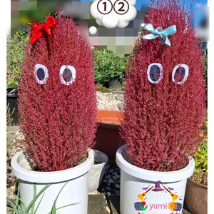 my コキア 鉢植えは、色づきました🩷❤ 👀🎀で可愛くしてみました(*^ー゚)
