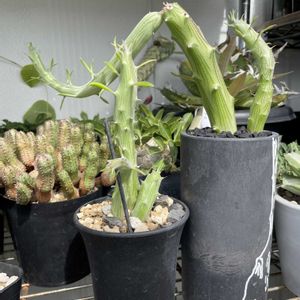 🏷️アガベの日 植え替えたら徒長しそうだと ずっと放置していた覇王竜 そしたら下葉が枯れてきてバッチバチの根鉢に なっていました💦 枯葉を取り傷んだ下葉も葉先に縦に✂️を入れ左右に剥いて整理 2時間ほど日陰で乾かし気持ち新たに植え替え🥴 冬まで安定してくれればいいな 鳳凰も大体一緒です🤭 子株さんが出てたので外して植え替え 昨日の中秋の名月見たかったなー 曇っていて残念でした😂