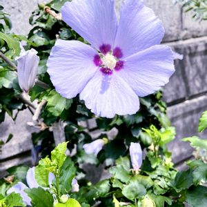 今日のお花✿❀ ムクゲ(木槿)💟 アオイ科フヨウ属 毎年楽しみに見せて頂く 通りすがりの家の塀沿いに咲く💠 淡い紫色🟣のムクゲさん✨💜✨ 八重咲きだと思ってだけど❗ 清楚で爽やかな一重咲きでした😅 🏷️木曜日は木に咲く花 🏷️青い花で夏祭り2025 🏷️癒しの薄紫