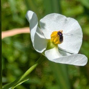 アギナシ オモダカと違って、花茎は葉よりも高く伸びて見つけやすい♡ 雌雄同株異花で、こちらは黄色い葯が目立つ雄花♡ 花弁が落ちて分かりにくいけれど、3輪生といって、3つずつ付く◎下から順に咲いていき、茎を取り巻く蕾は、すべて雄花だ♡ 葉の形は矢じり型、オモダカの場合は上側の裂片が下側の2枚より短いのが違いやね▲ 葉の幅には変異があって、広いものもあるからバランスを見ています💚