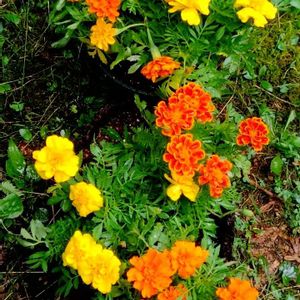 アフリカンマリーゴールドです。😃 うちの庭には今年初お目見えしました。 2色一緒の鉢への植え込みに仕上げました、🎶🎶🎶😁 🌱🌿🏵️🌸🌼💐🌱🌿🏵️🌸🌼💐🌱🌿