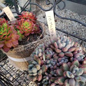 GSファン、多肉好きなら皆ご存知のビスタさんから届きました🤗 ↖️レティジア ↗️桃太郎 ↙️玉椿 ⬇️玉稚児 そしてうれしい😃おまけの ↘️碧魚連(持ってない多肉🥳) 今回は、ハオルチアやアガベではなく、今、とても色っぽいエケベリアやセデベリアそしてキモ可愛いクラッスラを選びました🧐🤓 ビスタさんの多肉は、元気モリモリ💪で、色艶がいいので、これから楽しみです😊 オマケもうれしい😊 実は、このオマケも子供の頃のように、ドキドキ感があって🤩碧魚連持ってなかったので、持ってないオマケは最高です😉😅 それから💐もついてました👍 ビスタさんありがとうございまーす👍🙇🏼♂️😄