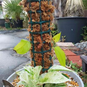 スキンダプサス 厚めの葉で、ヌメッとした手触りポトスとちょっと違います。 紐の付いた容器に入って売られてました。