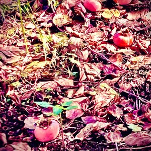 🍑柿の実 落ちた🍑 柿の実が色づき始めたら 「ボトッ」と音を立てて 落ちて来ました😱 冬の間 こも巻きをして 害虫退治をしたけれど 効果が見られない! 昨年は義母が運動を兼ねて 掃除をしていたけど 今年は骨折🩼のリハビリ中 柿の木の周りは 落ちた柿の実だらけに!