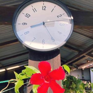 8時25分 寝坊しちゃいました😅 時間を忘れ庭先で遊んでいると お昼御飯や晩御飯の時間に 何時も遅れてしまいます! 掛け時計を取り付けて 時間管理⏰