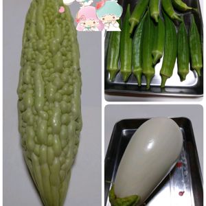 今日の夕方に収穫してきました\(^o^)/ ⚪️白ゴーヤ スライスして生で食べ てみた🙌 緑のものよりは苦味が少なかったよ(*^^*) ⚪️オクラ ちょっと大きくなりすぎたものも有りました。 ⚪️白茄子 今日は食べませんがスレも無く綺麗に仕上がりました(*^^*)