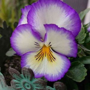 おはようございます🤗 我が家のビオラ 紫の縁取りが綺麗🌸🌸 一輪だけアップで💕