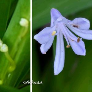 こんにちは☀ 今日は曇ってはいますが 蒸し暑いです アガパンサスは変わらず元気… 花茎下部の謎の子も 1輪清々しく咲きました! 3輪咲かせて あげられなかったのが 可哀想でしたが… 次に最初に気付いた3週間前の子達と コラージュにしましたので どうぞご覧下さい 昨日りんかさんが立ち上げられた 素敵なタグ 🏷️目から涼を✨ 初参加させて頂きますね💐💐🙏