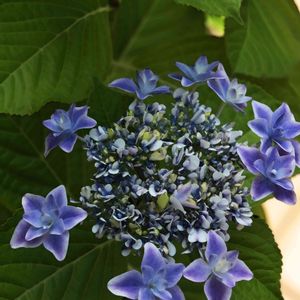 ガクアジサイ銀河を玄関先に移動させました。鉢植えは便利でいいですね🤔🤗。紫陽花は花はもちろん、葉が生き生きして好きですね😊。
