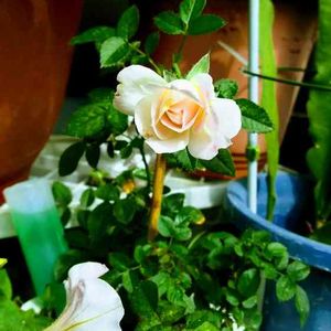 ミニ薔薇が久し振りに咲きそうです🤗蕾も広がり色も淡いピンクが出てて今の状態でも凄い可愛い😆
