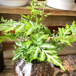こんばんは(*˙︶˙*)ノ" 毎月4日は シダの日🌿 シダ愛好会に参加します!! K.Kさんからの素敵便🎁で 我が家に来た ネフロレピス ハッピーマーブル さん 🌿 この葉模様が 好き過ぎる( *´艸`)💕 とっても可愛くて 大切にしてるのに 育てるの 難しい💦 毎日 霧吹きで 葉水してるけど どうしても 葉先が チリっとしてしまって (′︿‵。)トホホ… 環境が合わないのかしら? それとも お世話が下手なの?? うーん……(´・~・`)……💧 上手に育てられるようになりたいなぁ(꒪˙꒳˙꒪ )