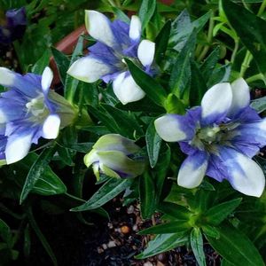 甘木リンドウ 心美 白寿 今月初め、一年ほど前から行きたいと思っていた園芸店にやっと行くことができ、そこで、昨年このアプリで見て、欲しいと思っていたこの白寿さんに出会い、お迎えしました☺️ ホームセンターに置いていないお花があり、とても気に入りました🥰