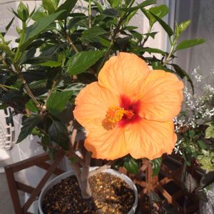 今年最後のハイビスカス🌺 気温が低いからか、ゆっくりゆっくり開花して、3日目まで咲いてくれました😊 剪定して、これからしばらくはお部屋暮らしです🌺