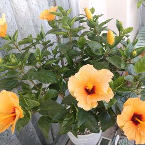 ハイビスカスが一気に咲いてきました💛 気温が下がってきたせいか、ほぼ2日間咲くようになって。 1枚目は昨日、2枚目は今日のpicです。 今日は、最高記録の6つです👏 このpicを撮った時には、一つしぼんできちゃったけど💦 とっても華やかです🥰