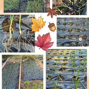 こんばんは🌃 昨日と今日は日中少し暖かく感じる1日でした。最高気温20℃、最低気温10℃前後 土曜日に種からの玉ねぎ苗🌱を植えました。 9月中旬に蒔いた超極早生玉ねぎ春一番430粒、早生ソニック570粒(2袋全部蒔いたらたまたま合計が1000粒になりました🥰) 穴あきのマルチにさらに穴を開けて、1列に10本ずつ植えて合計550本でした。細い苗はカウントしてないので、1000粒から約600本の苗ができました。 中央左のpic 、左がプラグ苗🌱、右がプランター苗🌱 プラグ苗の方が根っこが太くて、本数も多い気がしました。来年も頑張ってプラグ苗作るぞー🤣 写真を撮り忘れたけどプラグ苗、1マスに2本生えていたのがあったのがわりとしっかりとした苗でした。 来年は1マスに種ふた粒蒔く実験をしてみよう😤 日曜日に雨が降ったので、右下↘️pic、しっかり苗が立ちました😊🌱🌱🌱 大きく育ちますように! 今週も安全に💚