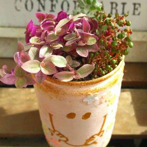 今日は12月上旬の気温らしいです。 一週間の雨予報も憂鬱。 一気に寒くなって多肉ちゃん達は大丈夫かな? 購入したコの、なかなか出来なかった植替えをいくつかして、その時点ですでに1ヶ月お水無し状態。 シワも寄っているんですが晴れの日が無いのでお水やりも控えてます。 こっちはまだ凍ることは無いからお水もあげちゃってもいいと思うんですけど。 以前、ダイソー鉢の中に見た目ツユクサ科の何かが入っていて(この時は綺麗な透き通ったグリーンだったのに…)、土変えした時にそのまま同居させてたら成長して分裂した頭が3つに増えました。 途中、汚い色になっててどうなるのか心配したんですけど。 葉の裏が紫だし、カリシアレペンス(レペンシスしかタグが無い…)じゃないかと思っています。 左隅にいるのはカリシアロザート。 この間のもっさり増えた前の、壊滅した鉢の最後のひと株を同居させてみたら育ちました。 土は赤玉土メインのアロエ・金のなる木用なので保水力はあると思います。