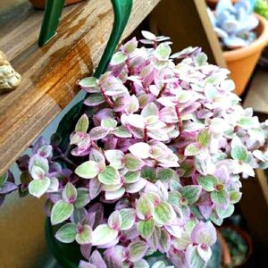 みなさんの所にあった、この子を見て、ピンクでかわいいあなたは誰? と思っていたら、近所のお花やさんが連休中10%オフ 置き場が室内になってる。 多肉売り場にあったけど、 観葉植物になっている。