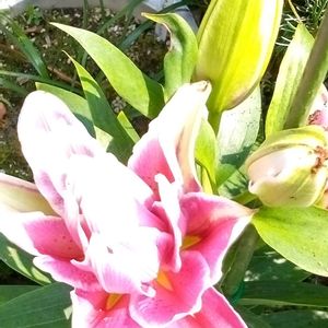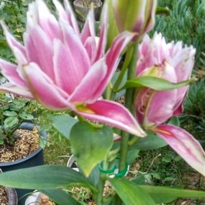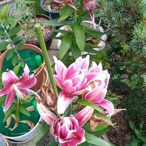 「八重ユリ 早咲きピコティ」がどちらもほぼ咲き終えました🥰