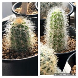 新たなサボテン、カエスピトーサ。 ホームページに掲載されてた白檀っぽい姿が気になっていたのを、見に行ってきました。 まさかそこで白檀そのものに出会ったのは想定外だったけど、今回のお目当はこれ✨白檀は後回し✨ 実物は想像よりゴツかったけど、気に入ったのを買って来ました(´∀`) 右側に、カウボーイタグ・ホームセンター出身白檀を置いて比較。 白檀より一回り以上太くてムチッと✨ もっとモリッとムキっとして、長さもあってニョロっとして、鉢のサイズも大きい(そして値段も高い)のもあったけど、白檀似だから成長早いに違いない✨と思って、ちまっとした形やトゲが気に入ったこれを購入。 帰宅してから調べたら、ミラ属の小型柱サボテン・カエスピトーサ、成長遅いんだそうな…(;ω;) モリッとムキっとニョロっとしたやつを買ってくれば良かったのだろうか…💧