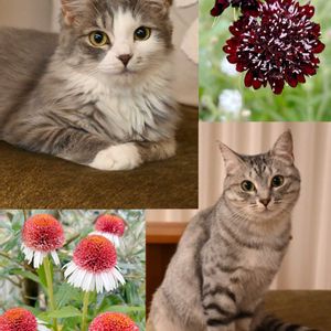 🏷️ニャンニャン祭り参加します🐈 1️⃣ちょっと前にインスタにもアップした写真です❤️ 娘が一眼レフで撮ってくれたにゃんず(=^・ω・^=) お見合い写真のように撮れてるでしょ🥰 2️⃣私がキッチンでご飯を作っているとカップボードで私を見てるネル ネルと一緒にいたいムム 2匹並んで置き物のようでかわいいです❤️ 3️⃣エキナセア ミルクシェイク 二代目です😅 目玉焼きみたいでかわいいです🍳 4️⃣エキナセア ブルベリーチーズケーキ🫐 美味しそうな名前💜 ピンクっぽく写ってますが赤紫です❗️ 5️⃣地植えのエキナセアは オリーブ シプレッシーノと同居してます😊