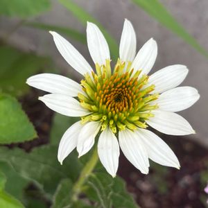 おはようございます☀️ 今年初めて蝉の声が聞こえました いよいよ夏本番 今朝のお花は 白いエキナセア 2種 2枚目の子は デリシャスアイス🤍 いっぱい咲いているのに 1枚目の子 名前は忘れてる 多分 ミルクシェイクかしら🤍🧡 1本しかお花が咲いてないです💦 場所が悪いから お花終わったら植え替えしなくては😊