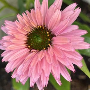 こんにちは エキナセア ミルクシェイク 花の中心部はオレンジ色 外側にかけて黄色 花びらは白色のダブル咲きタイプ 花の中央(筒状花)が盛り上がるタイプのエキナセアが欲しくって😘 今月もよろしくお願いします ( *^^人)♬*°